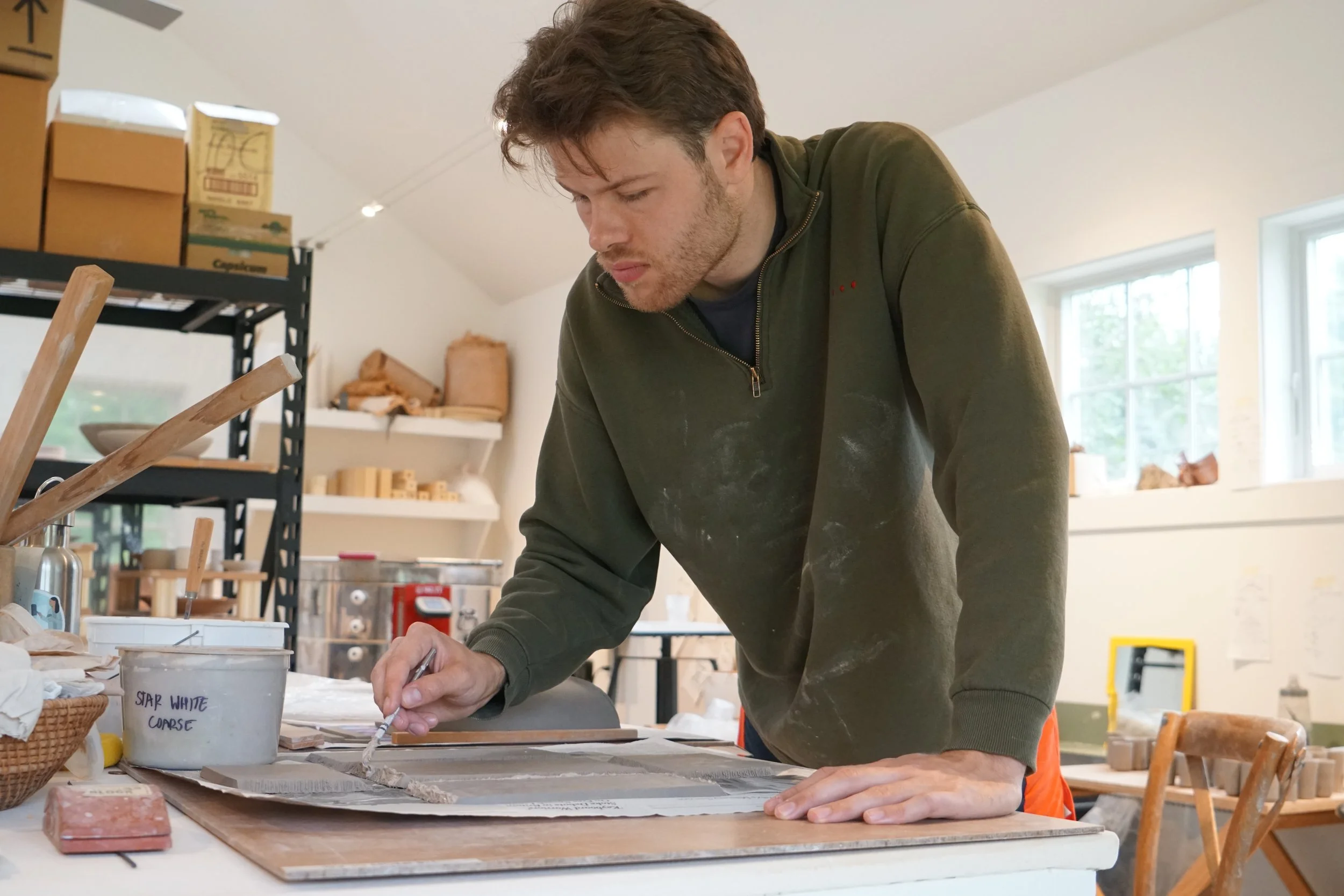 I began working with clay when I was nine years old, guided by my mother who is a potter. Working with clay is therapeutic and soothing. I love the feeling of slip and glaze coating my hands, the satisfaction of creating a smooth surface or trimming a piece with a sharp tool.